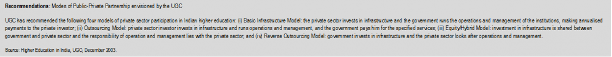 [30] “Higher Education in India: Issues, Concerns and New Directions”, University Grants Commission, December 2003, http://www.ugc.ac.in/oldpdf/pub/he/heindia.pdf.