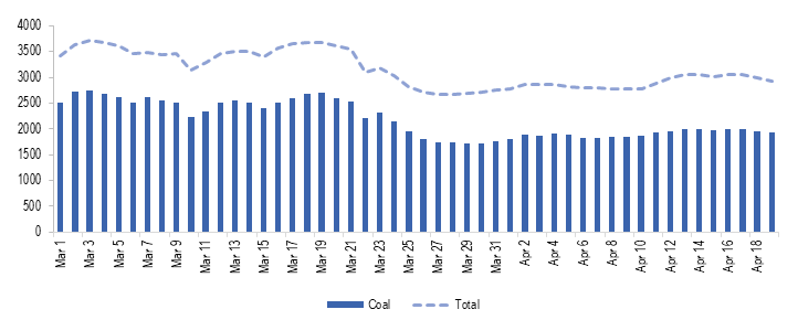 Figure 4: Power generation from coal between March 1, 2020 and April 19, 2020 (in MU)
