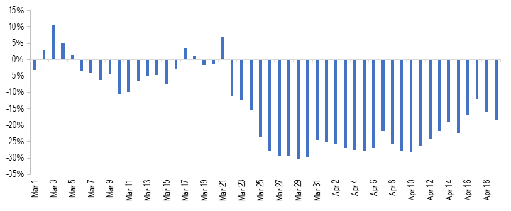 Figure 1: % change in power supply position between March 1 and April 19 (Y-o-Y from 2019 to 2020)
